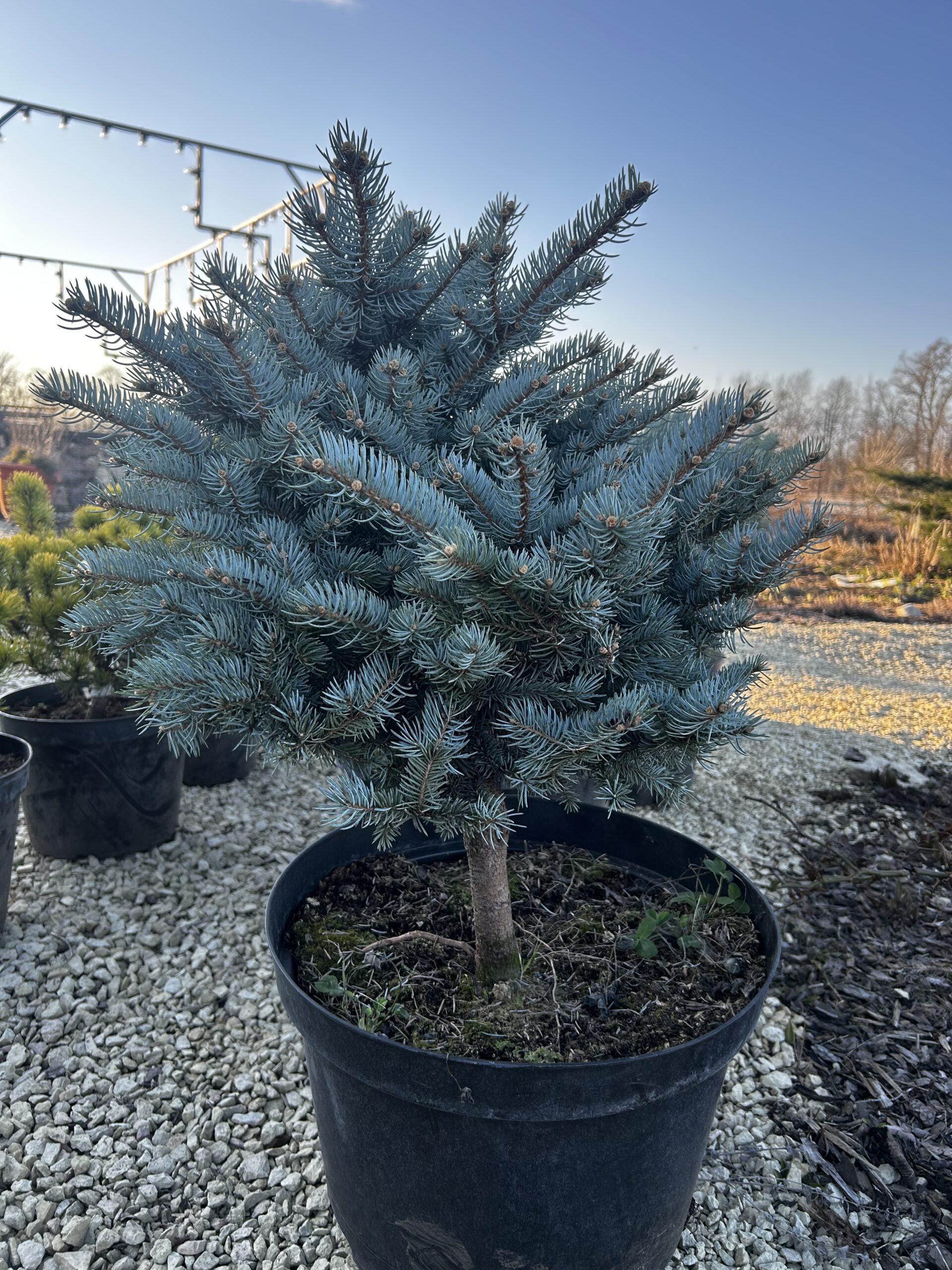 Хвоя серебристо-голубая, необычайно привлекательна весной-кремово-желтым молодым приростом (в течении 6-10 недель).