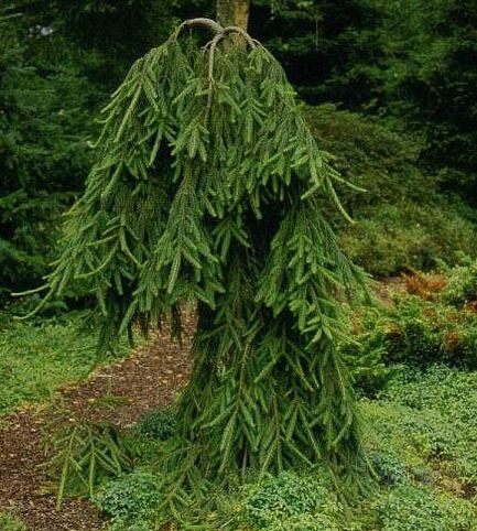 Более узкая и медленнорастущая, чем ель обыкновенная «Пендула», но немного мощнее ели «Инверса».